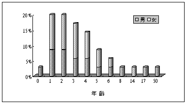 活體肝臟移植受術年齡性別比例圖
